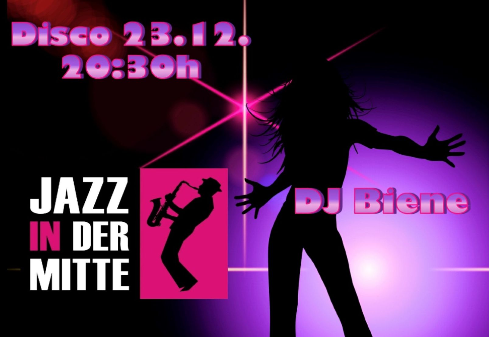 ![]() Nach dem fulminanten Start im letzten Jahr folgt heuer die ultimative Fortsetzung der Disco DJ Biene. In der groovigen Unterwelt mit duften Leut, flotten Barkeepern + mit explosivem Musikmix von allen Bühnen der Welt heizen wir vorweihnachtlich ein. Tanzt drauf, schüttelt was Ihr habt, denn Ihr seid kein Blech! Alle anderen retten sich selig an ... |